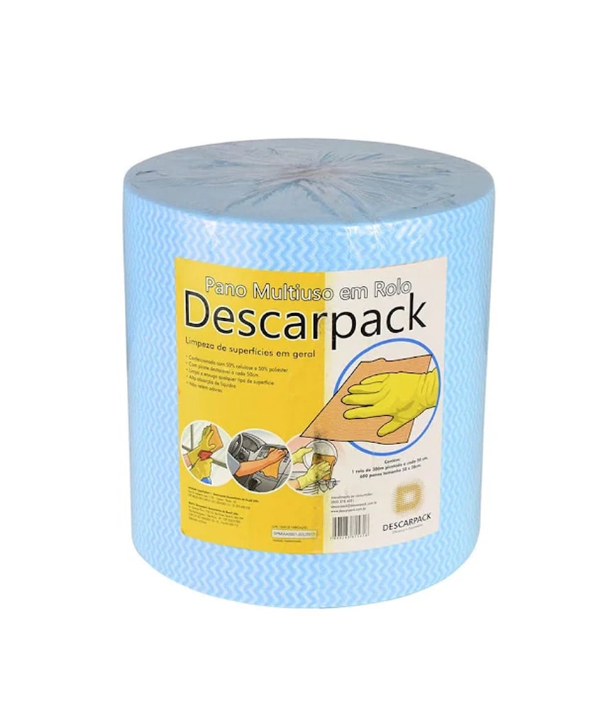 Pano Multiuso 28cm x 300m Azul Rolo Descarpack O Pano Multiuso 28cm x 300m Azul Rolo Descarpack foi desenvolvido com o intuito de garantir uma limpeza mais saudável, segura, prática e eficaz. Este produto não retém odores, é versátil, de alta absorção, e fácil de destacar. O Pano Multiuso 28cm x 300m Azul Rolo Descarpack é a opção mais moderna e avançada para limpeza de superfícies e está substituindo os panos comuns nos locais onde a máxima higiene é necessária, como cozinhas profissionais, indústrias alimentícias, refeitórios, bares, restaurantes, laboratórios, clínicas, hospitais, residências entre outros locais. Informações adicionais: – Multiuso – Biodegradável – 50% celulose – 50% poliéster – Alta absorção – Não retém odores – Picote a cada 50 cm – Bobina de 300 metros – 600 Panos 50 por 28 cm – Validade indeterminada Imagem meramente ilustrativa. Pano Multiuso 28cm x 300m Azul Rolo Descarpack