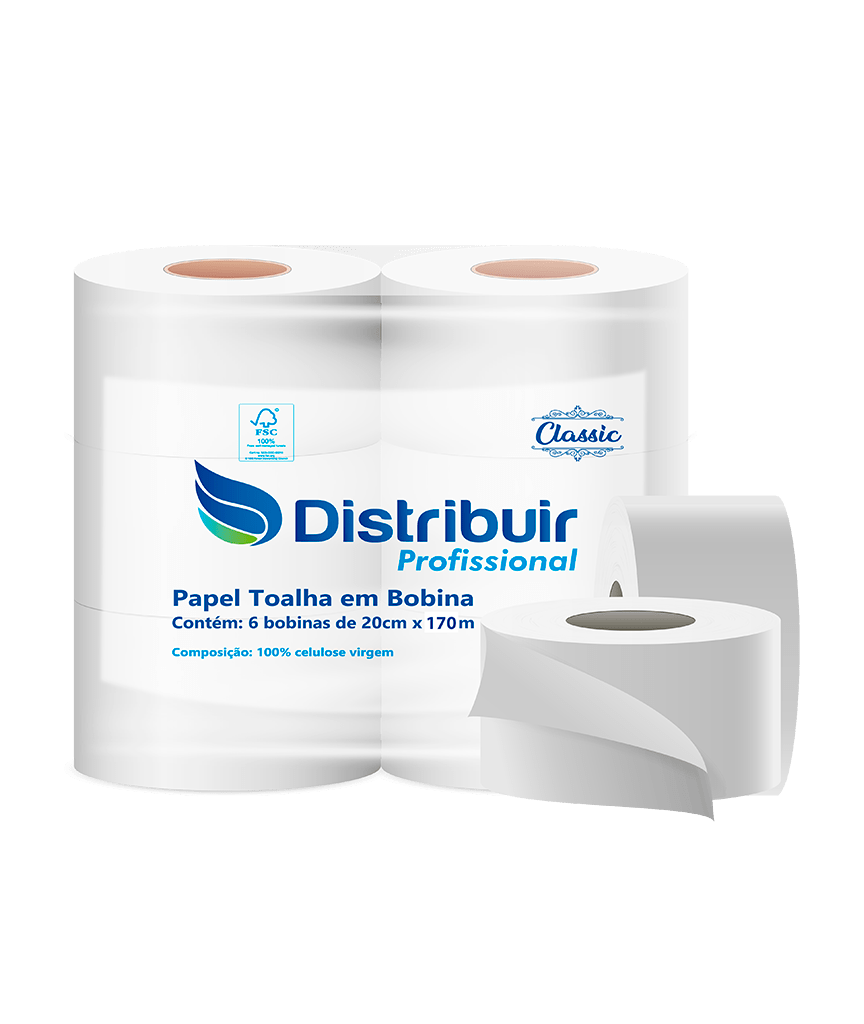 Papel Toalha Bobina Classic Distribuir Profissional – 170m – 24g/²